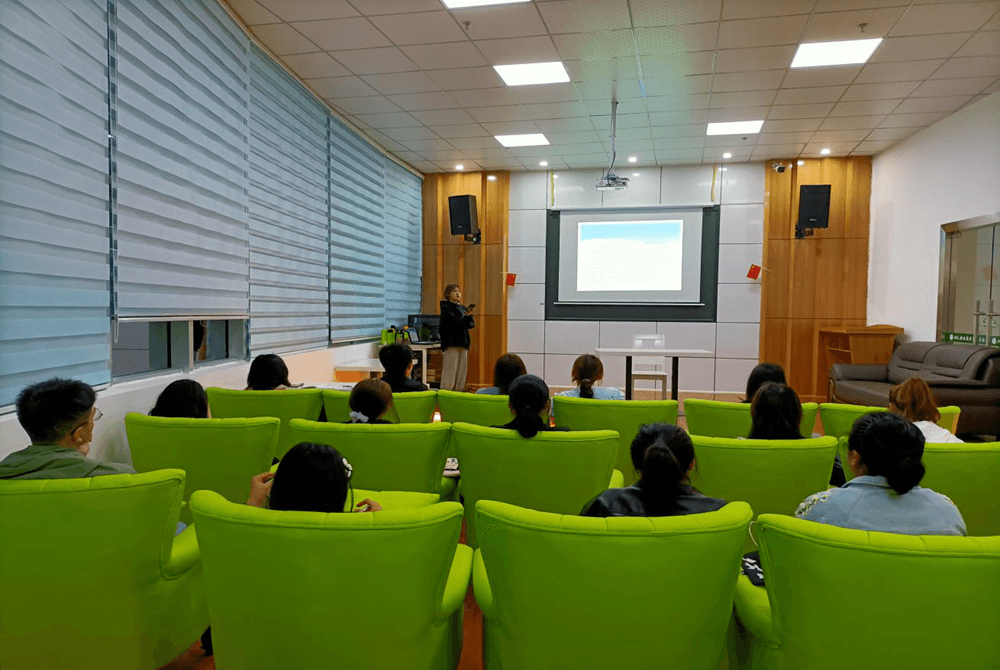 培训开始,龙久材就大学生逃课的现象和想法出发,讲述了大学生逃课的因素。继而结合在校大学生的情况探讨了大学生逃课现象的原因,并从客观方面和自身发展两个角度出发,讲解了影响大学生逃课的因素和应对的方法。紧接着,由赵念念、宋双燕,通过实际心理案例,对前面龙久材所讲的内容进行论证和总结。最后,培训也在击鼓传花的小游戏中结束。