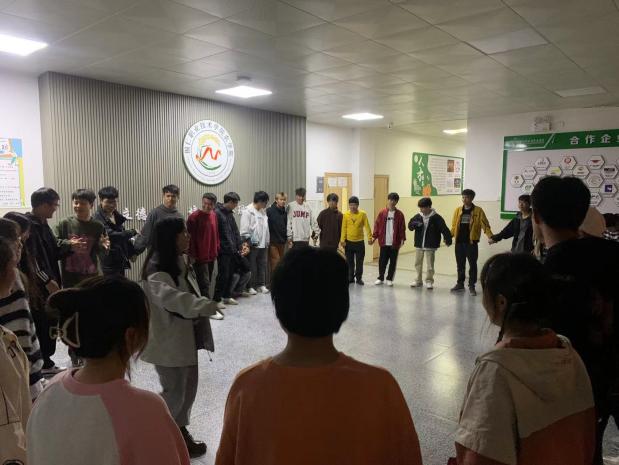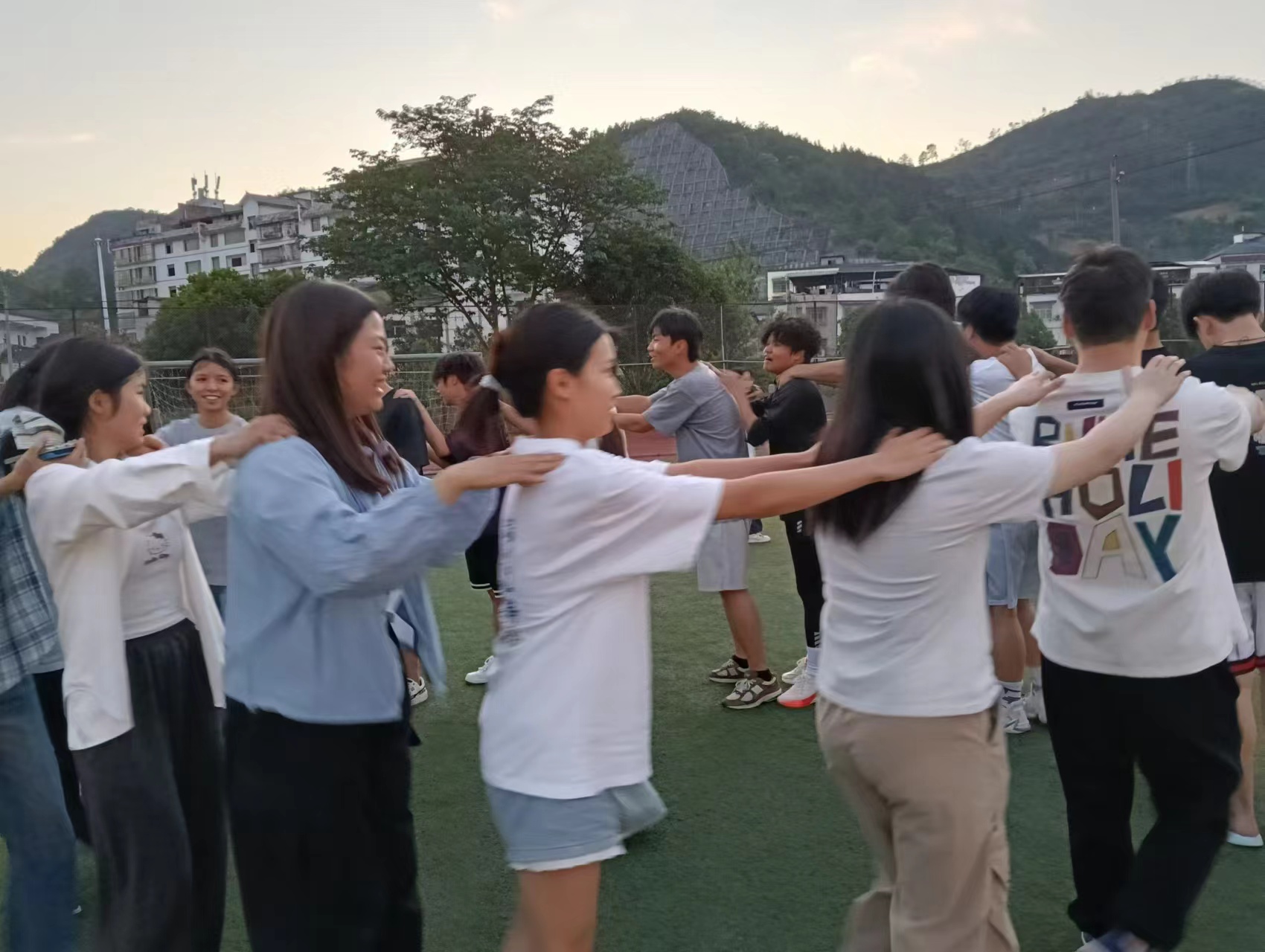 活动围绕“活跃氛围、凝聚团队、探索自我”的目标,精心设计了多元互动环节。在考验反应力的“造反行动”中,学生们需做出与主持人指令相反的动作,现场笑声不断,迅速打破了彼此间的隔阂;“按摩互动”环节让同学们在相互服务中,真切体会到“予人温暖,收获温暖”的快乐;而在“相似圈”活动中,大家通过“有谁和我一样____”的趣味提问,积极分享兴趣与经历,惊喜地发现彼此的共同点,有效增进了情感联结。除轻松的个人互动外,“松鼠与大树”“心有千千结”“填词作曲”等团队协作项目更是亮点纷呈。