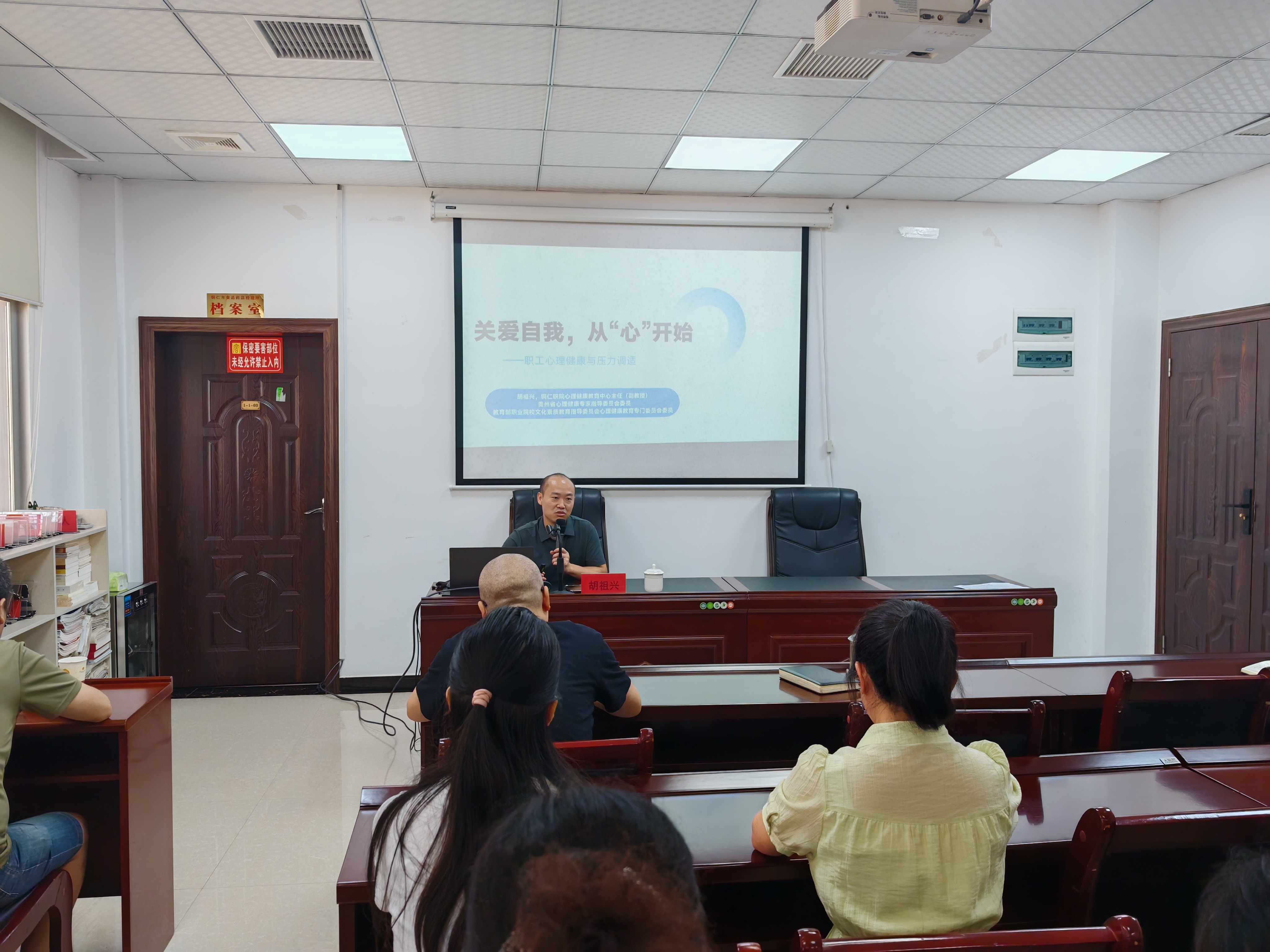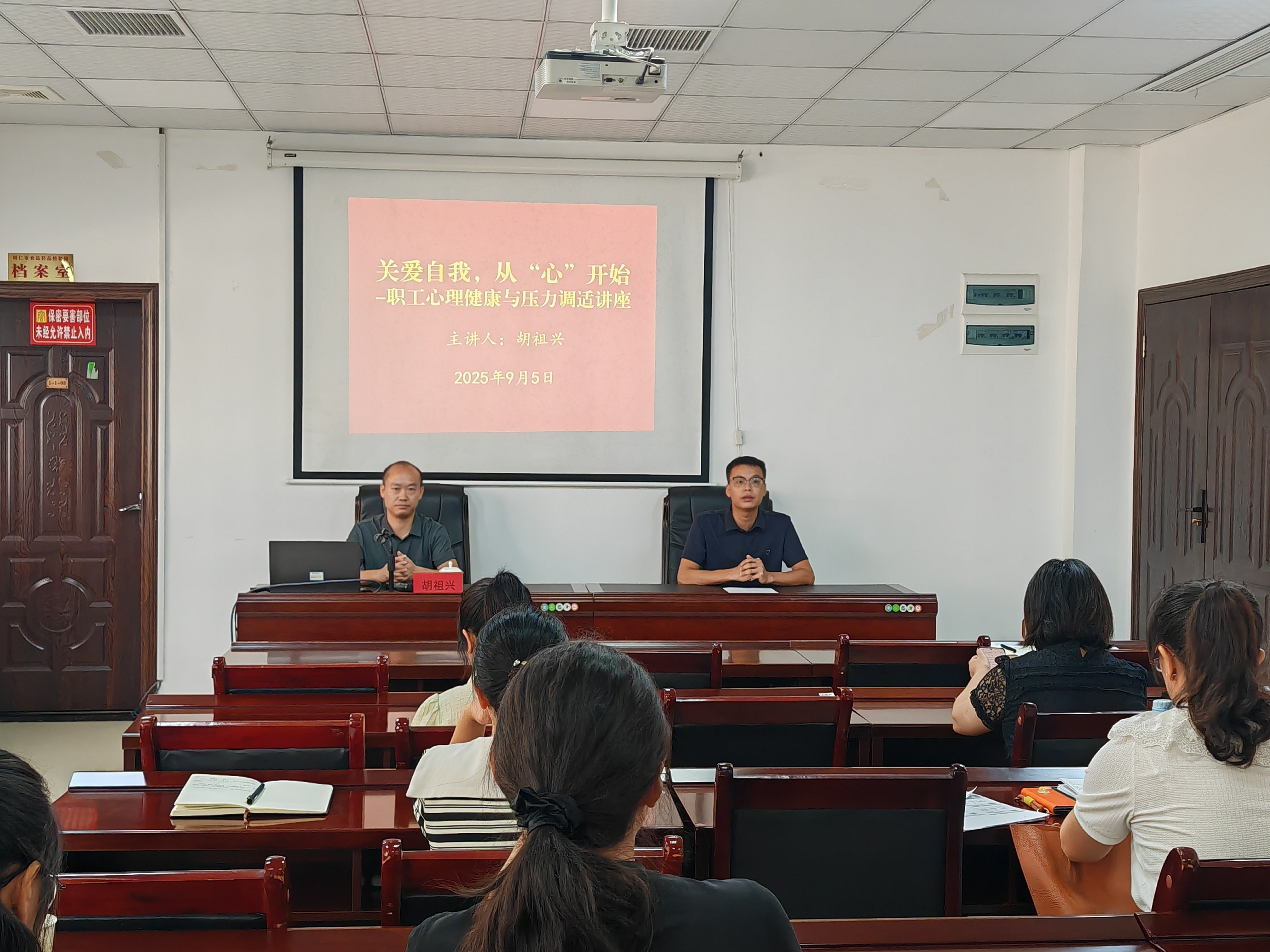 2025年9月5日上午,我校心理健康教育中心主任胡祖兴应检验检测院邀请,为该院职工做了一场“关爱自我,从‘心’开始——职工心理健康与压力调适”的专题讲座。