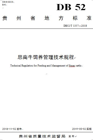 近期,贵州省质量技术监督局发布公告,我院张华琦教授编写的贵州省地方标准《思南牛饲养管理技术规程》正式发布。省地方标准是本省的行业指导性技术文件,旨在规范行业生产行为。该标准规范了思南牛的营养饲料、饲养管理、繁殖、疫病防控等方面的技术要求,对地方养牛业的发展具有重要意义。