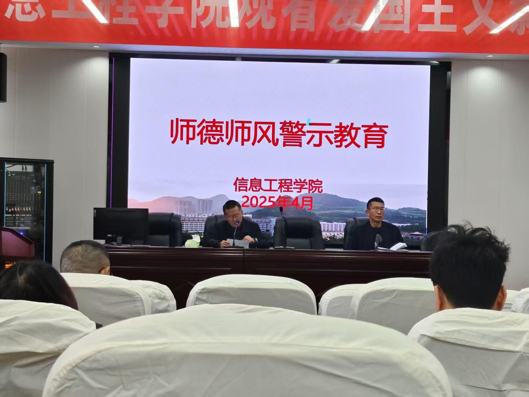4月25日,信息工程学院在一楼报告厅组织召开师德师风警示教育会议,会议由陈康老师主持,全体教职工参加。