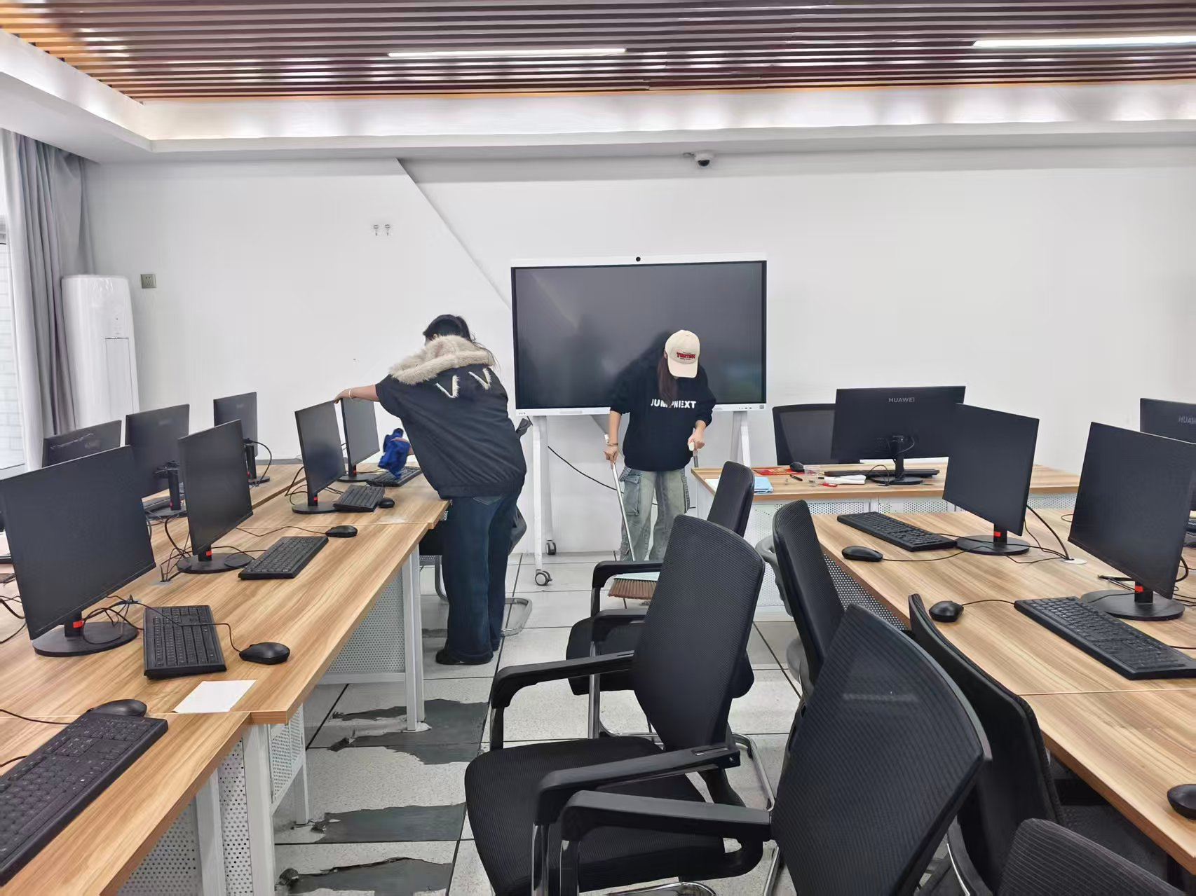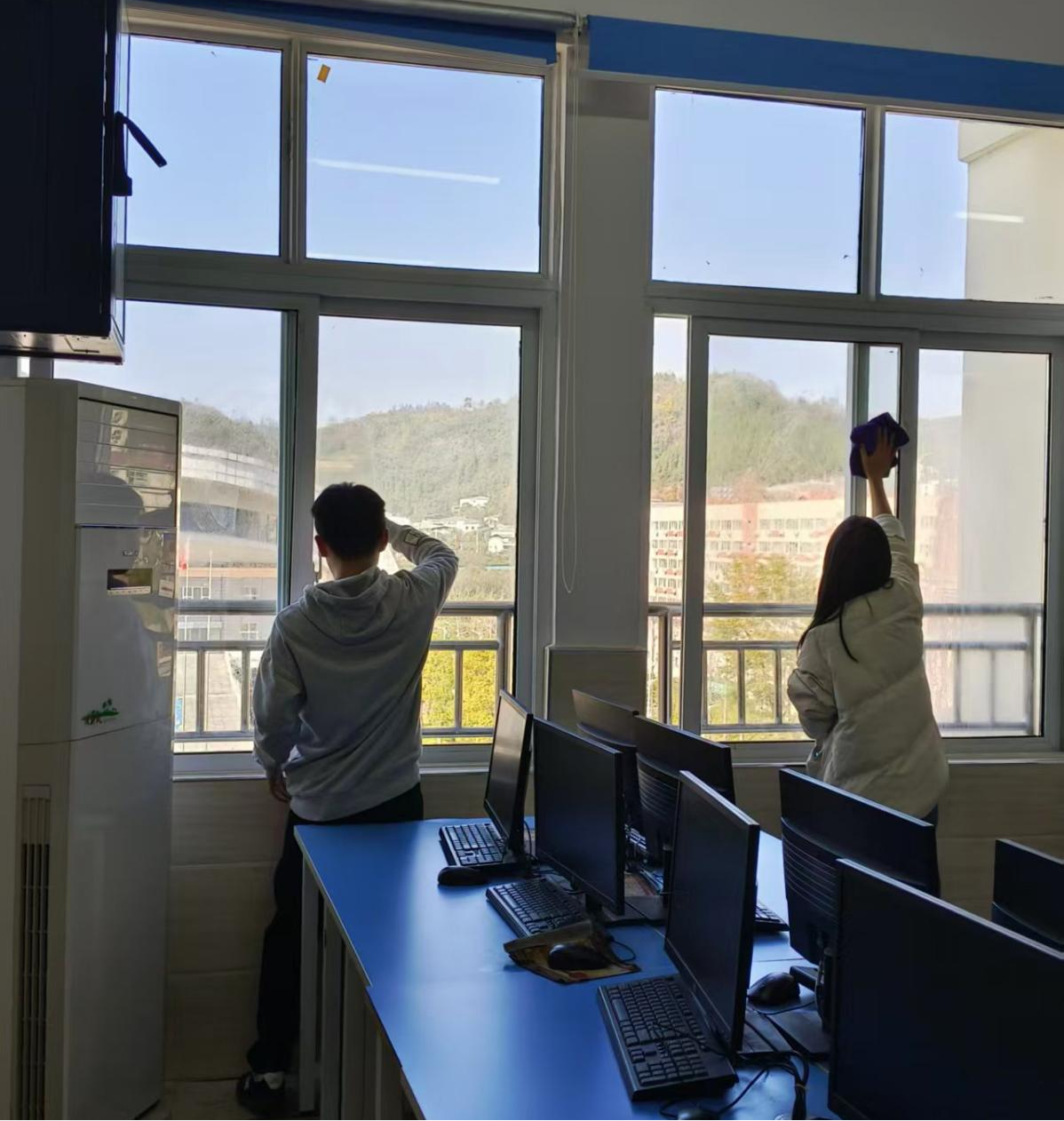 在同学们的齐心协力下,我院的实训室焕然一新、实训室被擦得干净整洁,窗户玻璃也被擦得透明锃亮,处处彰显着劳动的成果,更展现着劳动教育的成效。资助护航下的大扫除,不仅扫去了校园的尘埃,更在学生心中播下了“劳动光荣、创造价值”的种子,让他们在劳动中绘就文明校园图景,在实践中书写青春成长篇章。