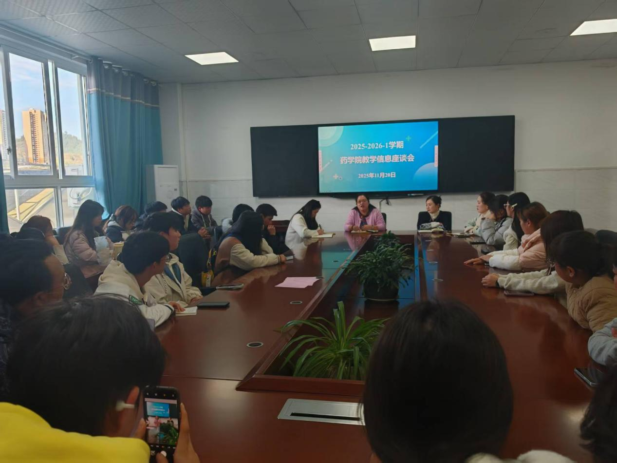 为深入贯彻 “以学生为中心” 的教育理念,精准破解教学管理堵点难点,持续夯实育人根基、提升教育教学质量,11 月 20 日,药学院召开 2024 级、2025 级教学信息员意见反馈座谈会。药学院党委书记王正琼、副院长刘杰、教务科科长夏俊丽出席会议,与来自两个年级的教学信息员代表齐聚一堂,以 “面对面” 交流、“心贴心” 沟通的方式,共商教学提质良策,共绘育人发展蓝图。